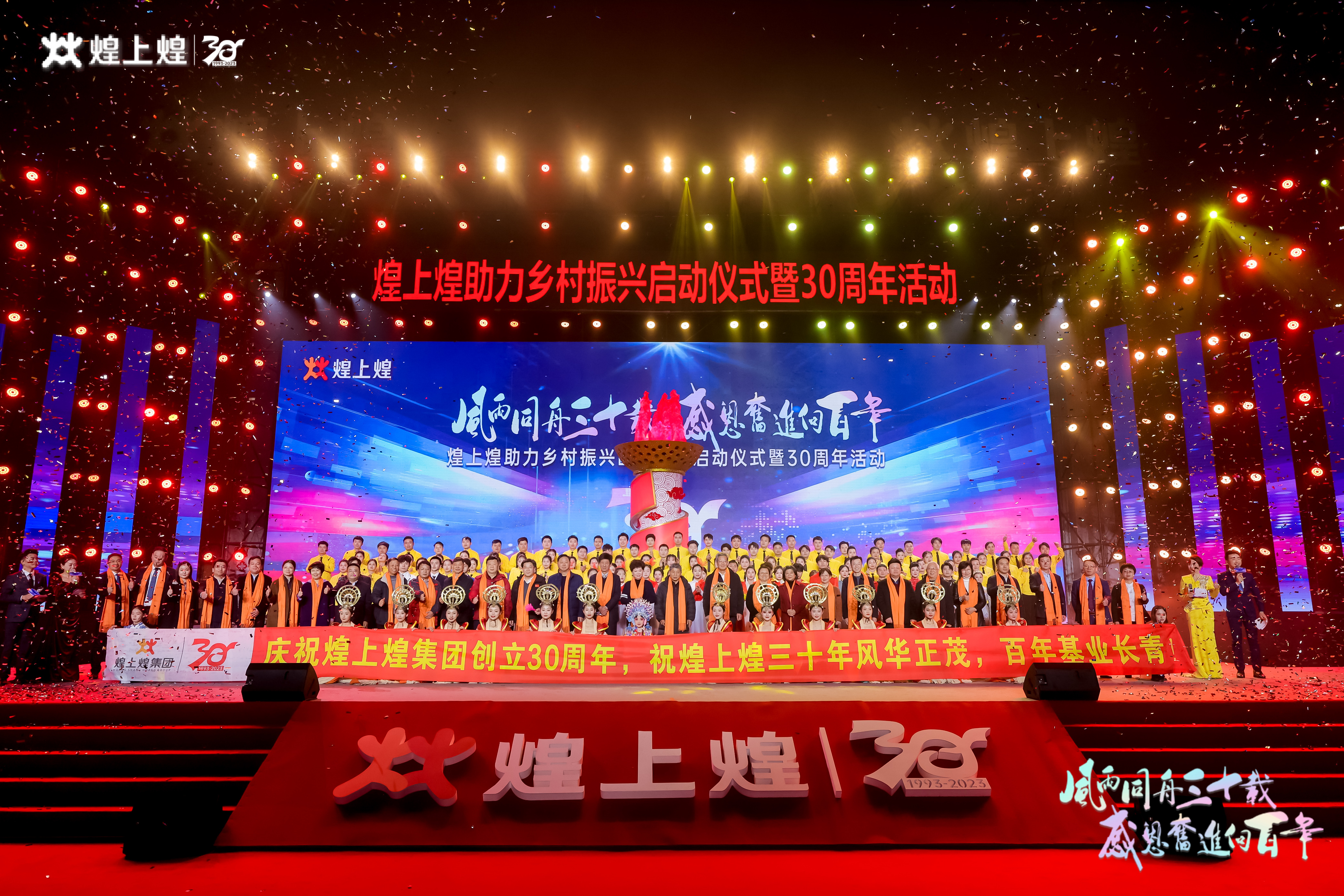 12月28日晚,“風雨同舟三十載 感恩奮進向百年”煌上煌助力鄉村振興戰略規劃啟動儀式暨30周年活動在南昌洪州體育館隆重舉行。來自五湖四海的煌上煌人齊相會,用激動的感恩之心,重溫集團30年的發展點滴,用澎湃的奮斗之心,共同點亮煌上煌風華而立的炙熱未來。