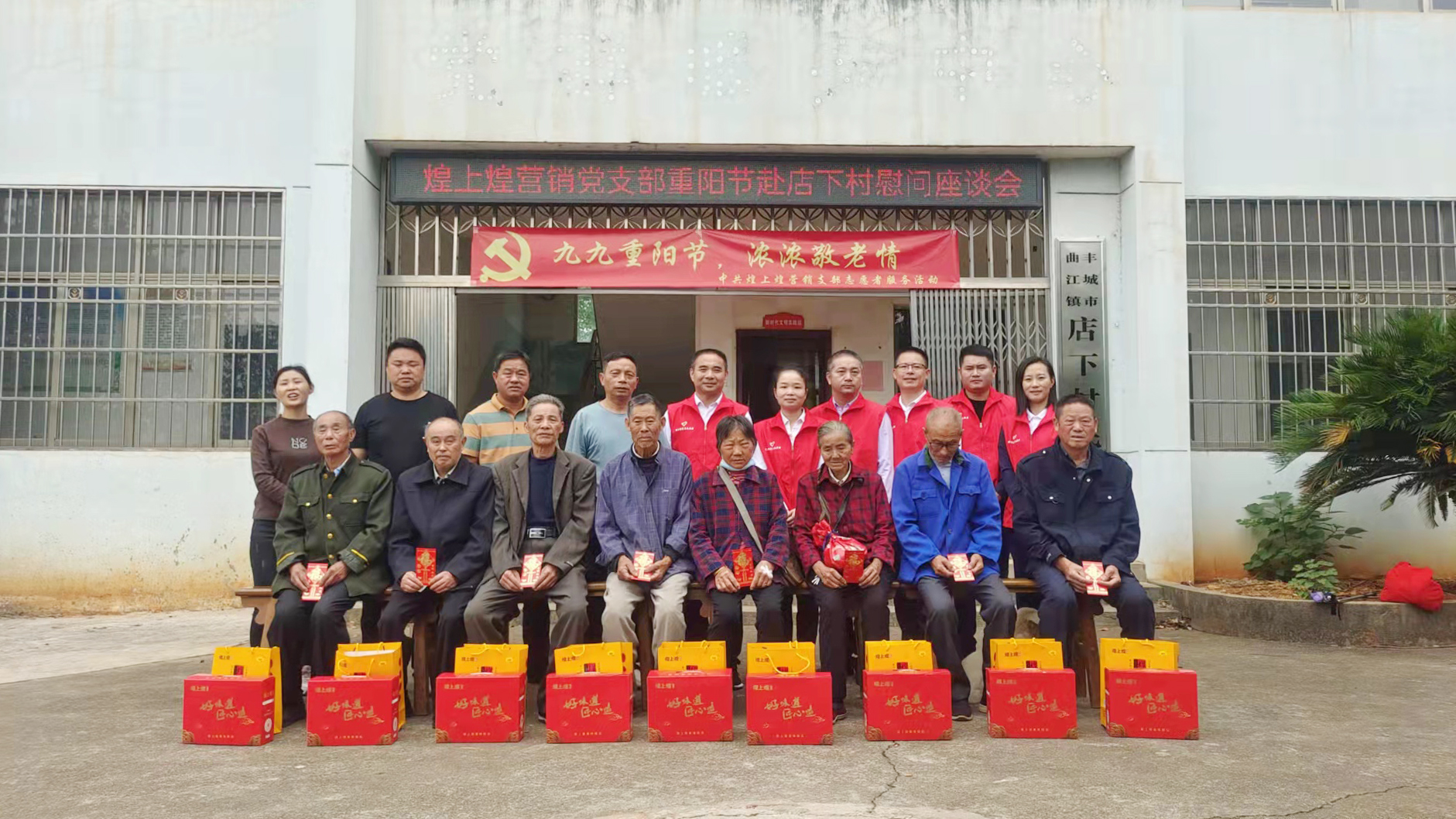 當天上午,在當地村支書的組織安排下,煌上煌營銷黨支部還召開了座談會。會上,營銷支部副書記管斌亮代表煌上煌向老人們致以親切的慰問和節日的祝福,并對老人們的身體狀況和生活起居表達了關心和問候。隨后,志愿者一行給老人們發放了慰問金和精心準備的煌上煌禮品。